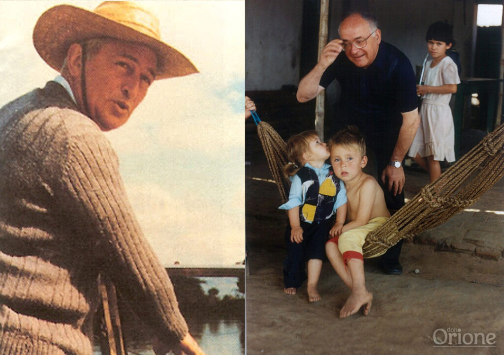 El P. Luis Cacciuto a bordo de una lancha. El P. Ángel Pellizzari en una de sus recorridas.